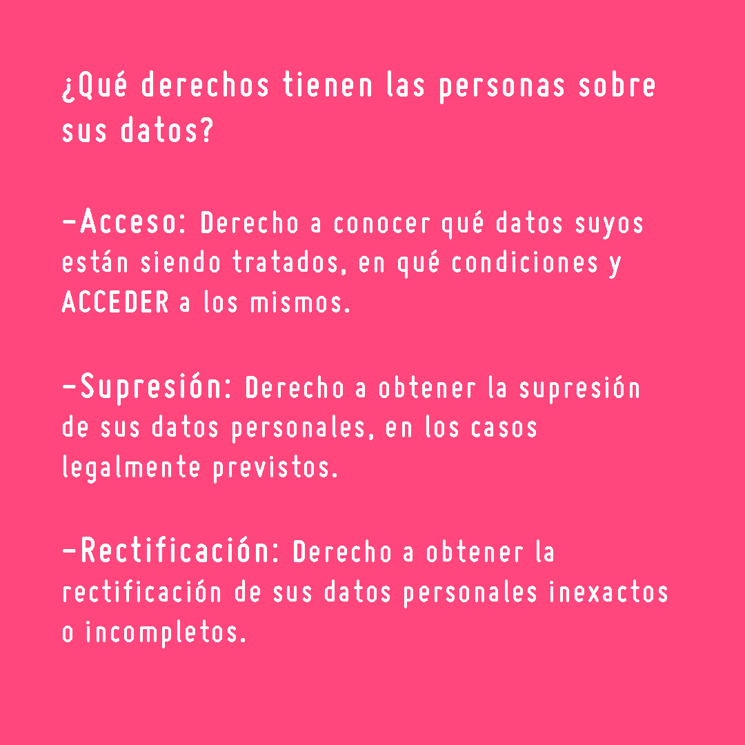 Es importante mencionar que las personas tenemos derecho a recabar en los datos que cualquier entidad pública o privada tenga de nosotrxs. En el marco global del derecho relacionado con protección de datos existe un concepto denominado «habeas data», el cual confirma el derecho de cualquier persona física o jurídica para solicitar y obtener la información existente sobre su persona, y de solicitar su eliminación o corrección si fuera falsa o estuviera desactualizada. En lo relacionado a cámaras de videovigilancia debemos considerar que nuestra imagen es un dato y si queremos acceso a este tenemos que tener claro cual es nuestra finalidad.